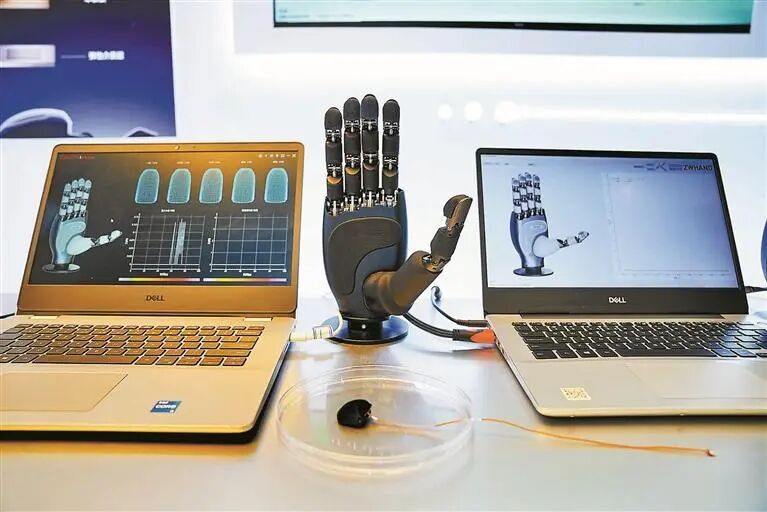 ▲兆威新一代灵巧手具有手部感知系统,能感知外界温度、压力等并作出相应的反馈。